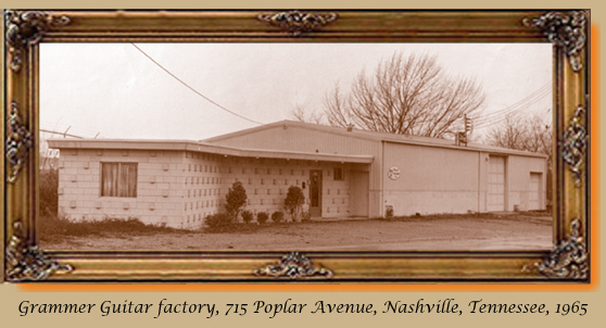 Billy was always good with his finances, and with an $18,000 investment (a shoestring budget), RG&G got down to the business of building a guitar to Billy's specifications. Warehouse space was located and the factory was set up at 715 Poplar Avenue in Nashville. Two of Billy's guitars, a Martin D-18, and a Gibson J-45 were dissected, examined, and studied at great length. With the help of Fred Hedges, Billy drafted out the dimensions for the new instrument and came up with a design that was both innovative and handsome. It had what Billy considered to be the best features from both the Martin and the Gibson. A bracing pattern was formulated and after six months of trial and error, the first Grammer prototype was built in March of 1965.